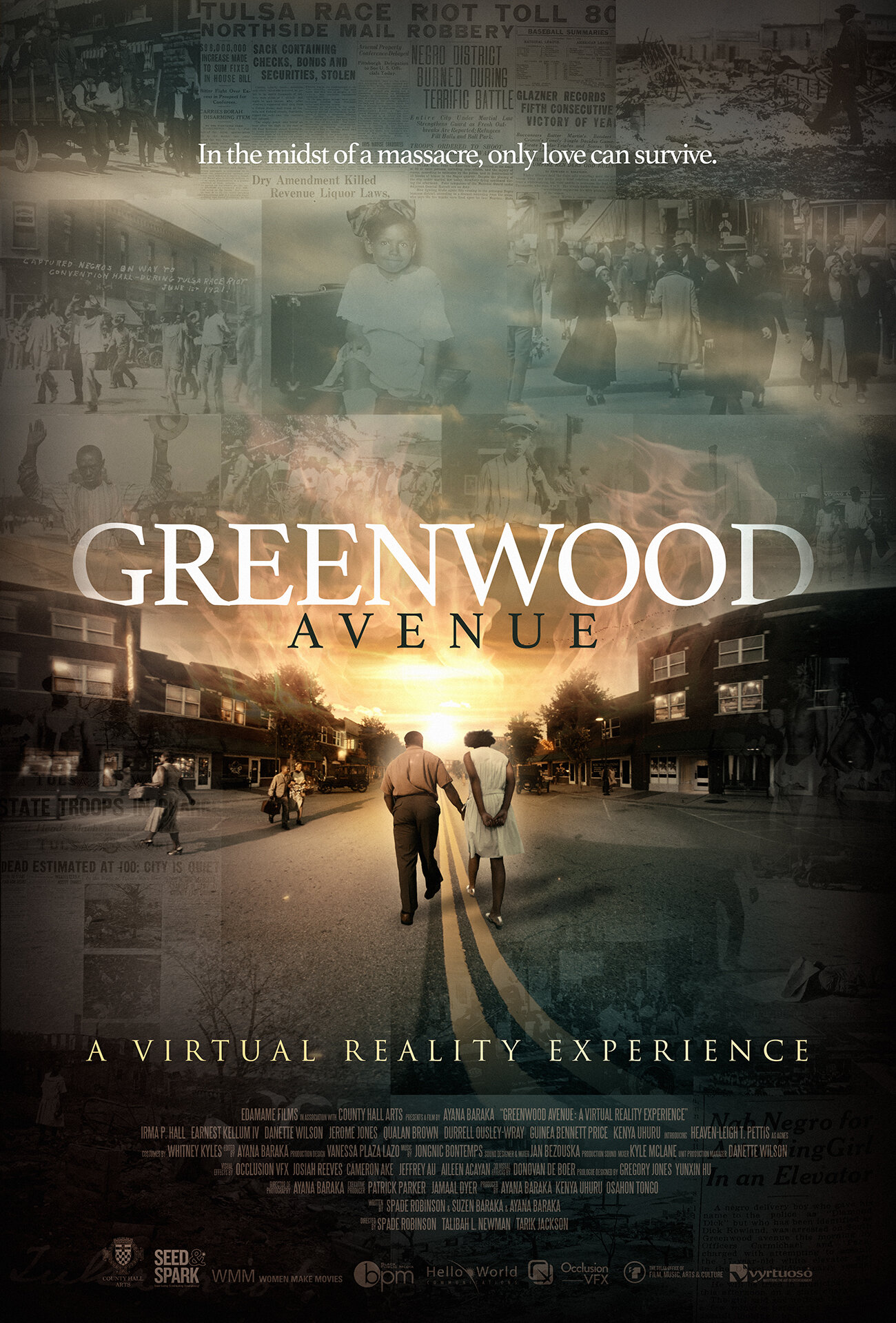 Greenwood Avenue: A Virtual Reality Experience is a historical fiction five-part series with five-minute episodes, created by Ayana Baraka. The first kiss is usually something that is remembered. This is the moment, our main character, 14-year-old, Agnes relishes—momentarily. Like most teenage girls, all she wants to do is spend time with the boy she likes, her first love Ernie. And it is through her love story that the audience gets to experience Greenwood Avenue, the main artery of Black Wall Street, in all of its glory. On this spring day in 1921, Agnes has her first kiss. However, something else happens on this day that makes her grow up quick. It exposes her to realities she’d been shielded from. 10-thousand deputized white supremacists kill 300 Blacks. For 2 Days—Black homes and Black businesses are looted, machine gunned, fire bombed from the sky and left to burn in Tulsa, Oklahoma, a.k.a. Black Wall Street, the most affluent Black neighborhood in America. Unfortunately, Agnes’ world is flipped up-side-down when the events of the Race Massacre begin to unfold. Her home is looted. Her father is taken. And she doesn’t know if she’ll see her beloved Ernie ever again.